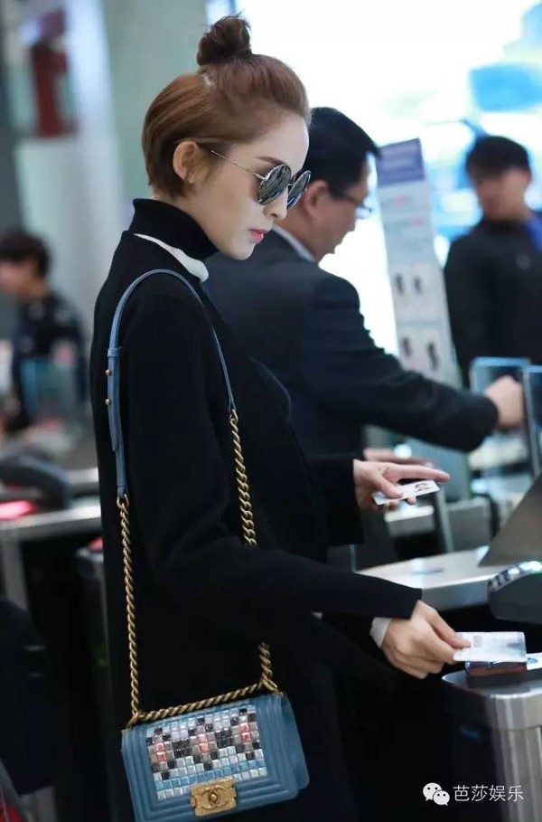 背包娜扎也选择了跟牛仔裤同色系的Chanel蓝色Le Boy款式,帅气中带点俏皮,还跟可爱的丸子头很配哦