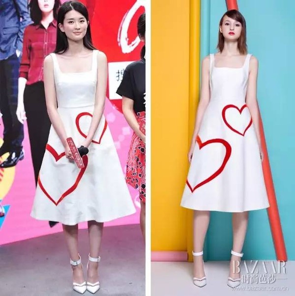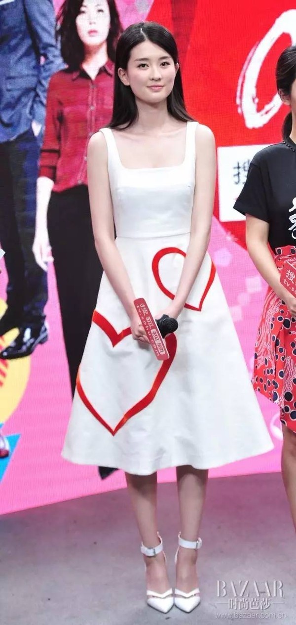 《欢乐颂》里最低调的“关关”终于摘掉了眼镜,其实乔欣可是一位面庞娇美的妹纸,不仅身高170cm+,身材也爆好。卜柯文的这身桃心连身裙用几笔线条就勾勒出了少女的清新,U型领映衬了乔欣的天鹅颈,这也是非常考验锁骨的领型。微张过膝的A字型裙摆剪裁线条流畅,好一番赫本式的淑女气质,束踝尖头鞋也是配得恰到好处!