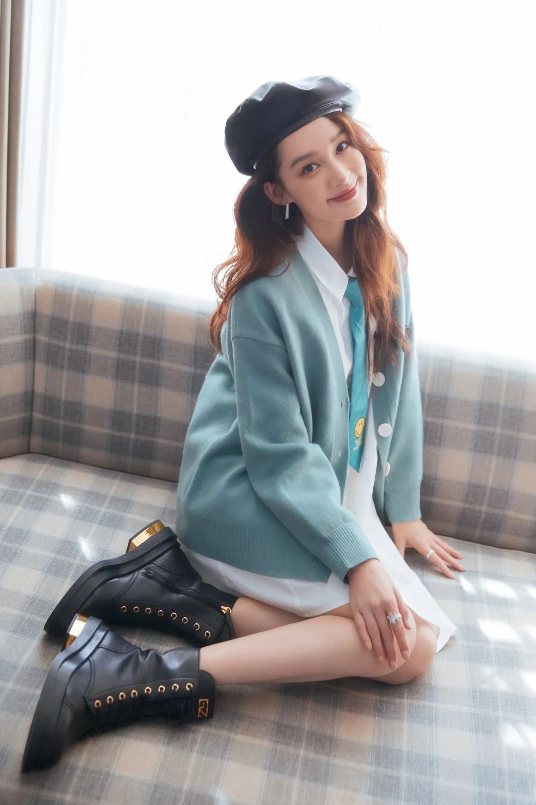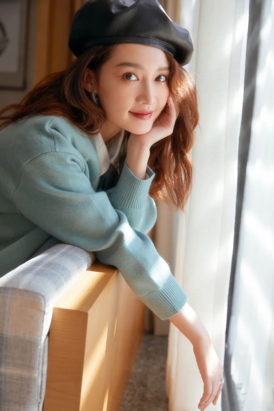 平时觉得打理麻烦,其实学一下丽颖和李沁的搭配,一顶贝雷帽+一件针织衫就能拉满精致度咯~