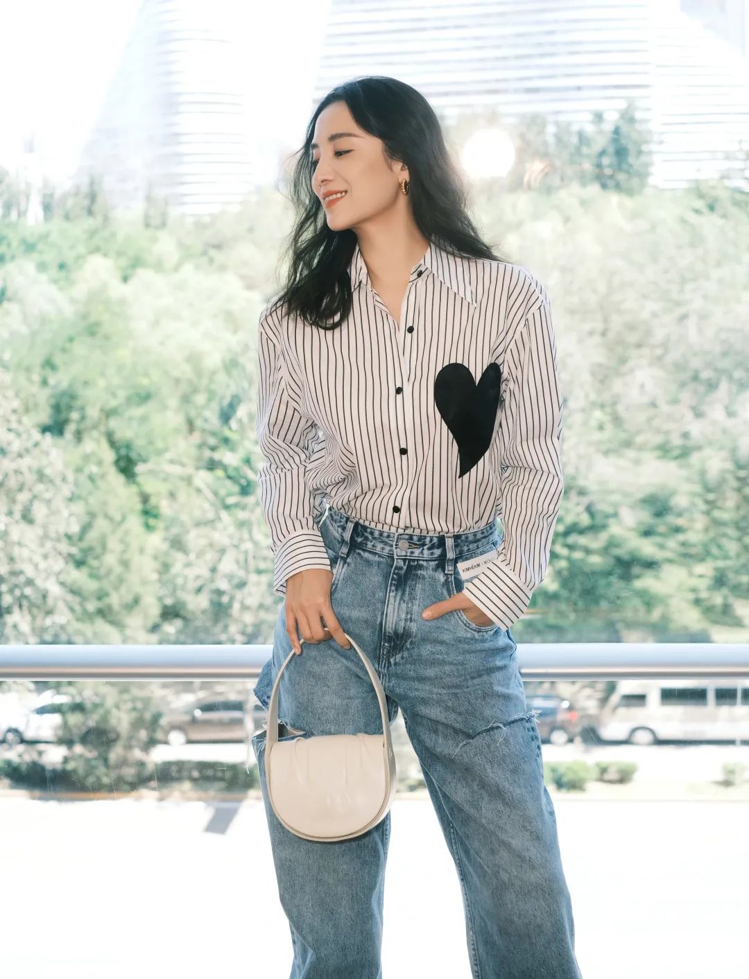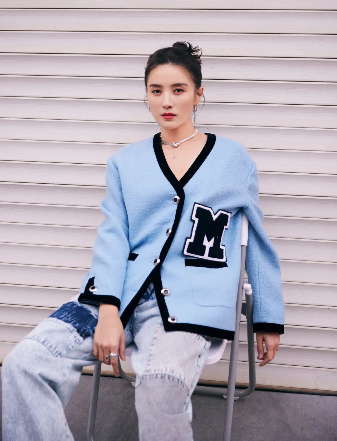 慵懒感的卷发再配上一缕呼应上衣的浅冷色系挑染,在知性温柔之余又给整个造型增添了点复古童趣的味道。不单是够上镜,就算在生活里看也会给人一种“哎,这女孩打扮得真挺精致”的感觉。