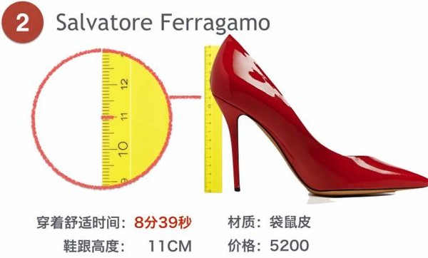 Salvatore Ferragamo为玛丽莲.梦露设计的素面高跟鞋使其名声大镇,脚掌处宽度适宜,舒适性最好,适合需要长期站立或行走的场合。