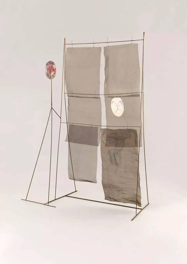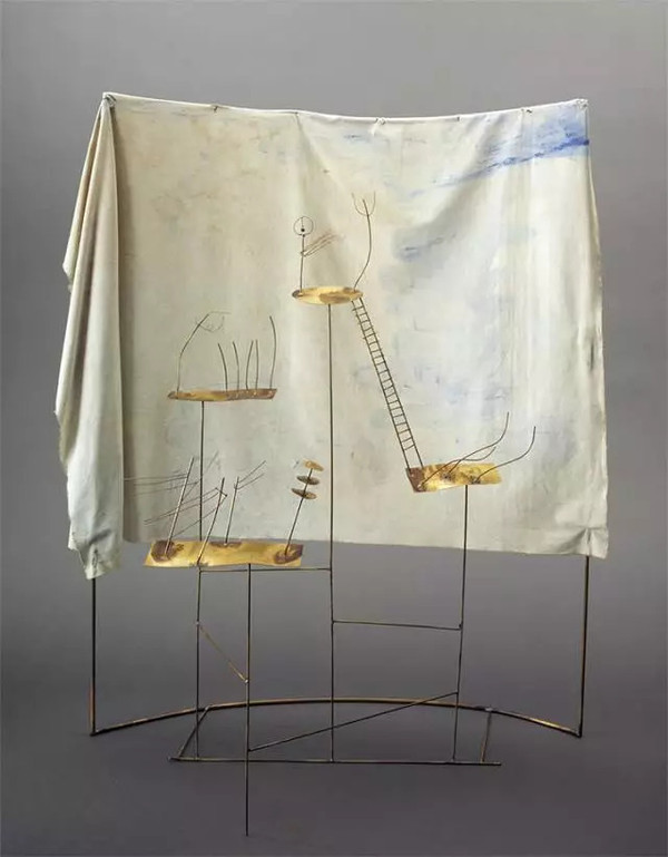 福斯托·梅洛蒂《继莎士比亚之后》,黄铜、印花织物,1977年