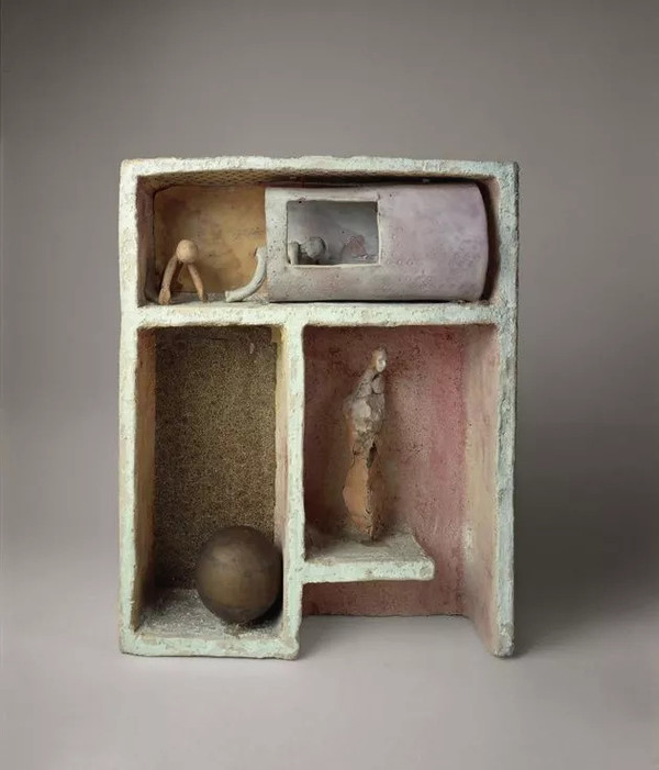 它们从悲剧中汲取活力,并穿梭于一个又一个的生命故事架构之中。它们是开放的盒子,里面有迷你的小人和一些装饰元素。福斯托·梅洛蒂仿佛是给观众提供了一种微型表演,并给他们留下了想象和挑战的空间。
