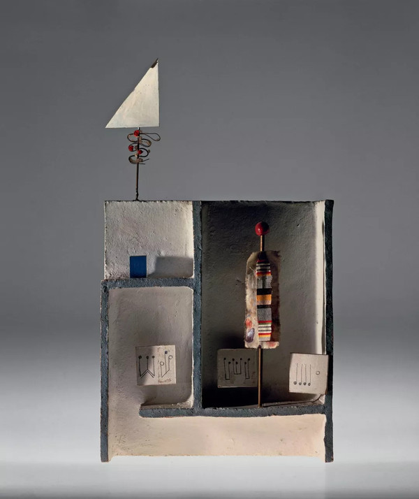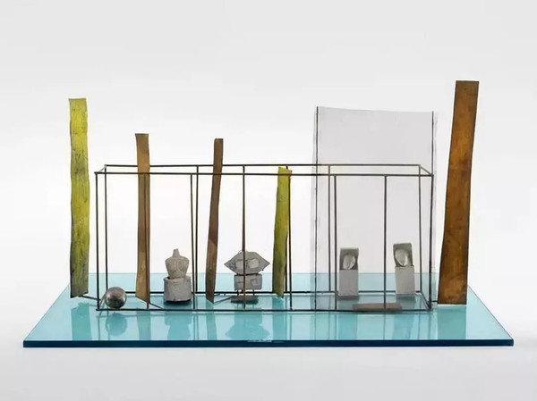 福斯托·梅洛蒂《水上的小博物馆》,黄铜、石膏、彩绘赤陶、绘画纸张、不锈钢,1979年