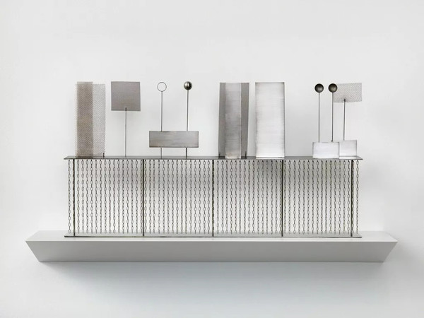 这些由白色石膏或是薄金属制成的抽象作品,有着严谨的几何比例和音乐的“对位”感,融合了福斯托·梅洛蒂对数学和音乐的热爱。它们是非物质化的、可穿透的。