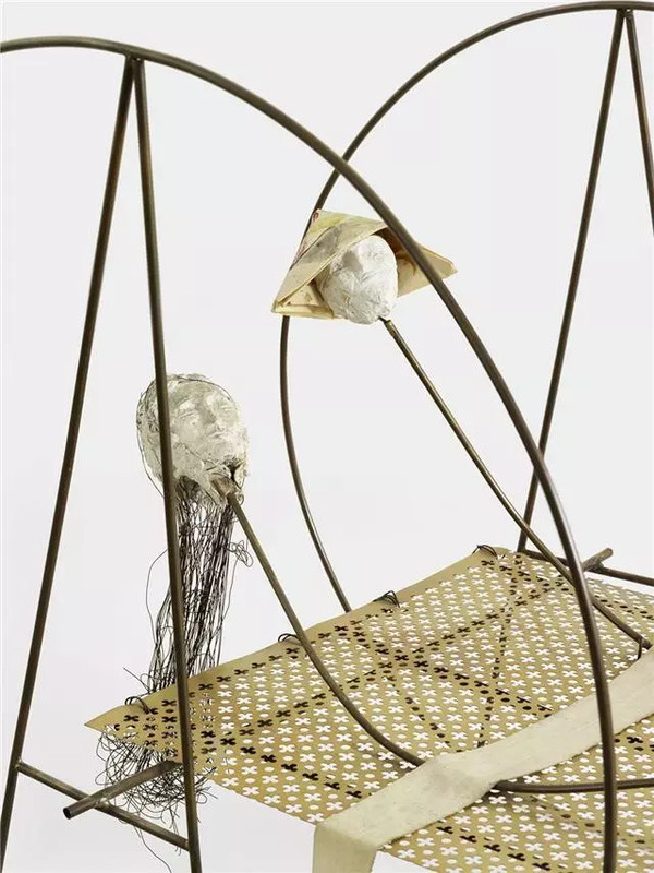 福斯托·梅洛蒂《小丑的新娘》,黄铜、石膏、织物、绘画纸张,1979年