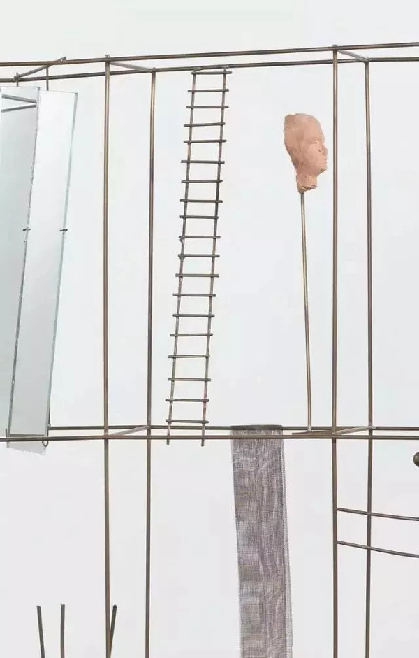 福斯托·梅洛蒂《随着镜子》,黄铜、陶土、镜子,1979年
