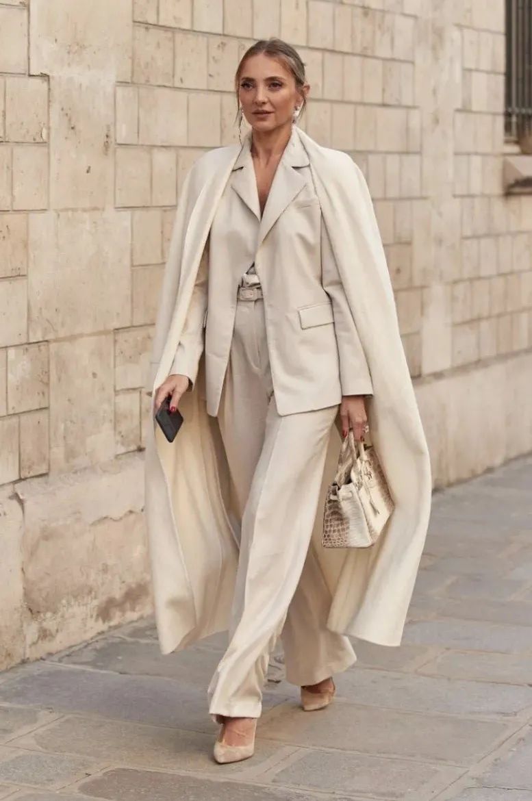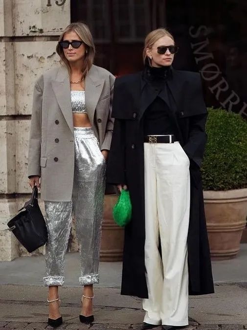 超长大衣+阔腿裤超长大衣和阔腿裤也是绝配,两者都是带大气场单品,搭配在一起便能穿出走路带风的气势!西装款的阔腿裤很适合职场女性来凹造型,不仅遮肉显瘦还能拉长腿部比例,特别有女精英的飒爽感觉。中间叠穿西装外套,成套穿着,这样的造型通勤感更强。日常无须花费过多的时间搭配,大衣一穿上便能出门。