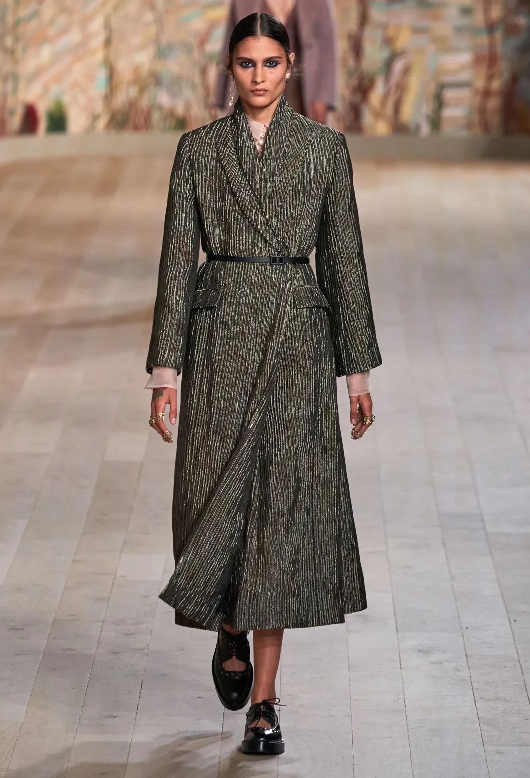 除了板型和长度,大衣的肩部设计也是不容忽视的细节。像甜茶身上的大衣基本都是肩线分明,显得整个人非常挺拔有精神。而在今年秀场上,气场型垫肩长大衣的出现频率非常高,加宽的肩线比例和垫肩修饰,穿上就有霸道总裁雷厉风行的气质。
