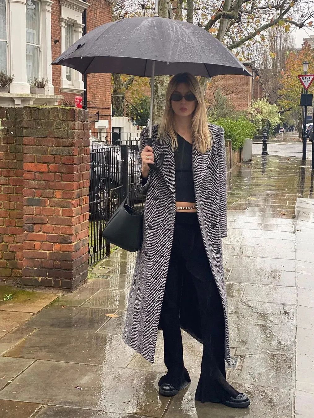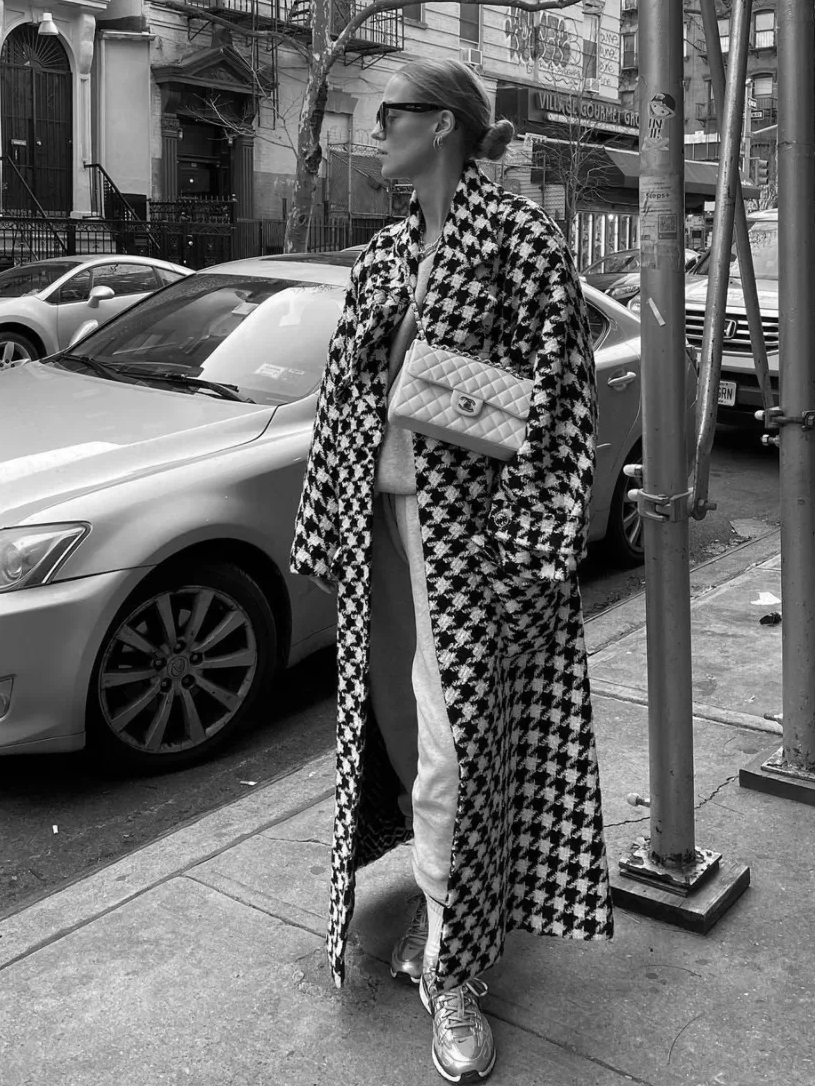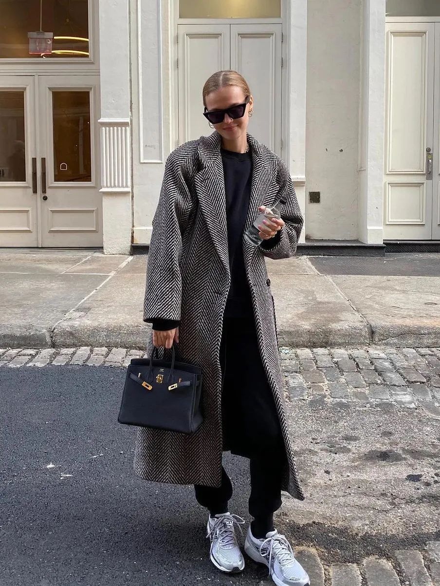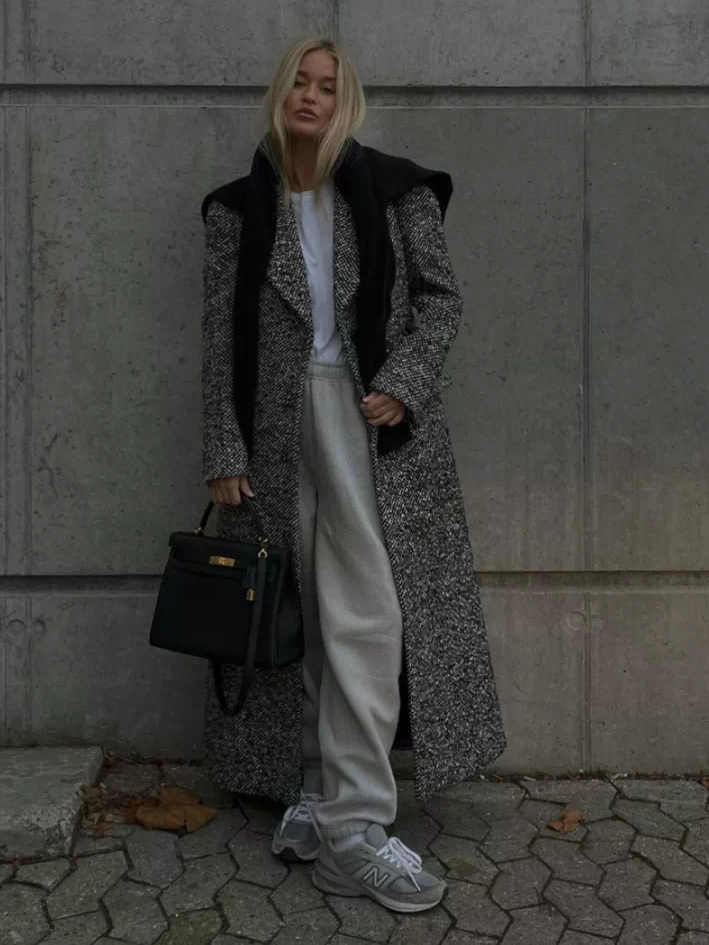要说超长大衣这两年最时髦的“黄金搭档”,非运动套装莫属。在Athflow风的影响下,几乎所有时髦的博主、明星都这样穿过。
