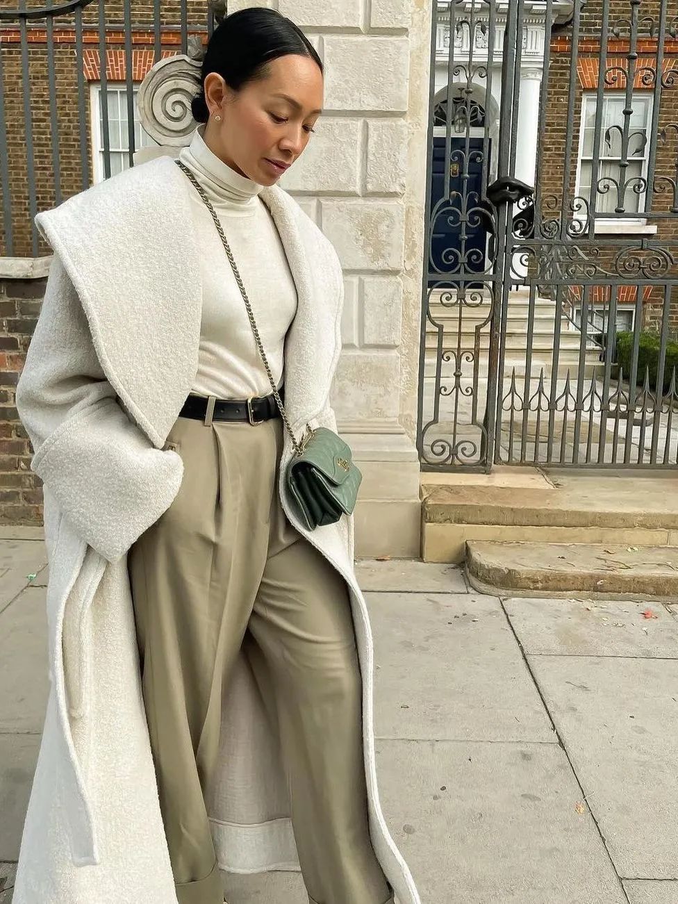 看到“超长款”的关键词先不要着急拒绝,尤其是小个子们,别总担心会被超长大衣“压垮”。其实,长及脚踝的大衣设计不但可以拉长比例,还意外地能提升气场,对身材的包容性非常好。