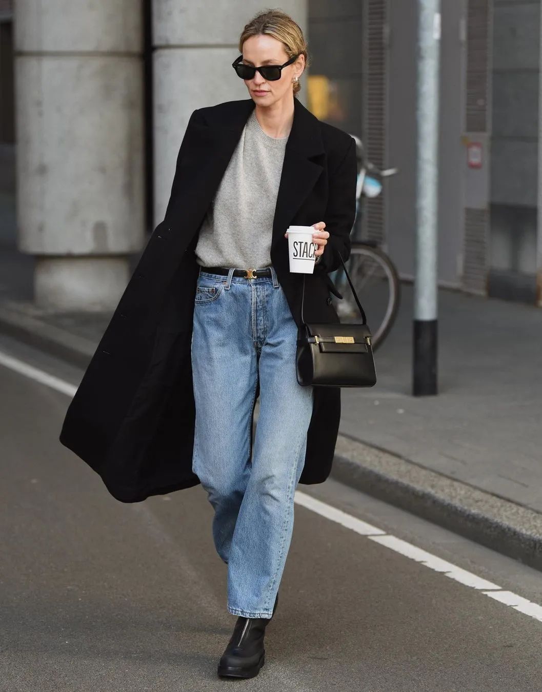 驾驭功力了得的时髦精们还可以把内搭换成全套的牛仔造型,牛仔的休闲风格和大衣的高级质感形成强烈碰撞,让整体的穿搭也变得更有层次。