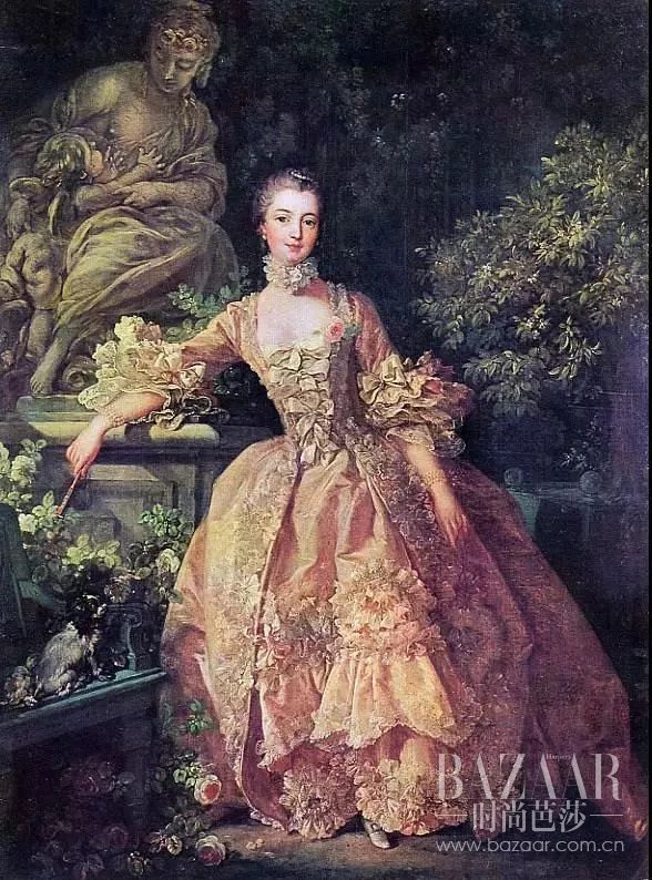 在 14 至 19 世纪的西方,粉色广受贵族喜爱,并且男女皆宜。18 世纪中期,钟爱粉色的蓬帕杜夫人情迷各式粉色服装,主导并推动着洛可可艺术的发展,粉色在当时被拉向了时尚的巅峰。