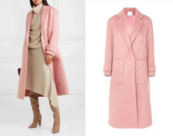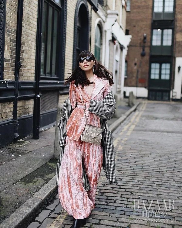 第二,除了冬天常见的毛呢材质外,还要熟悉更多材质的粉色魅力。像是泛着金属光泽的缎面,穿在身上十分有高级感,在今年冬天尤为流行。