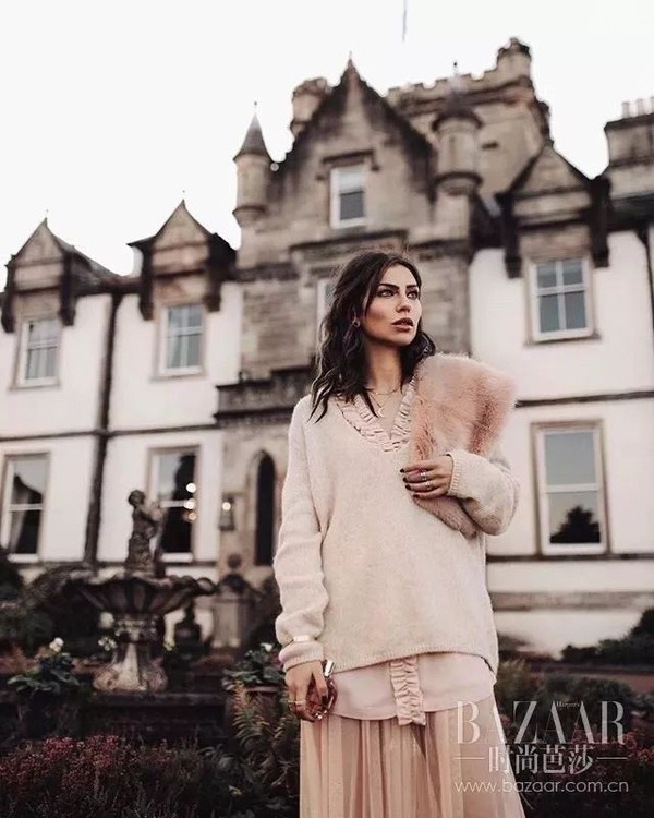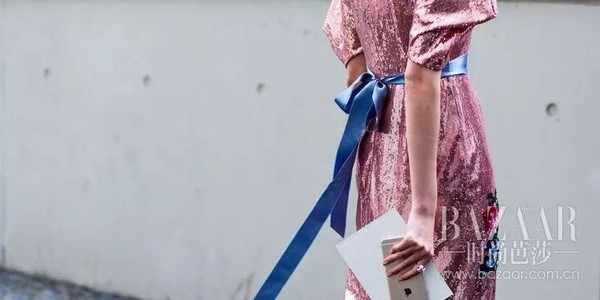 粉色的亮片或是镶嵌亮丝的丝绒材质,阳光下流转着光芒,尤其适合作冬天的内搭,穿在大衣里低调得很张扬。