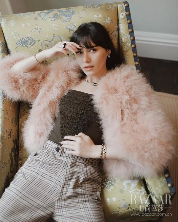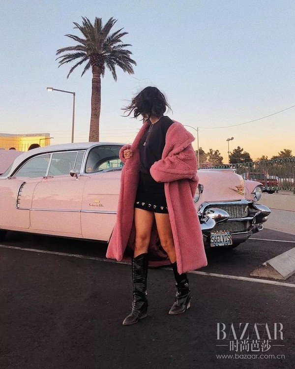 粉色的毛毛材质看上去一改前面的酷炫感,冬天穿特别保暖,优雅又可爱的少女形象就在眼前,让人忍不住心生保护欲。