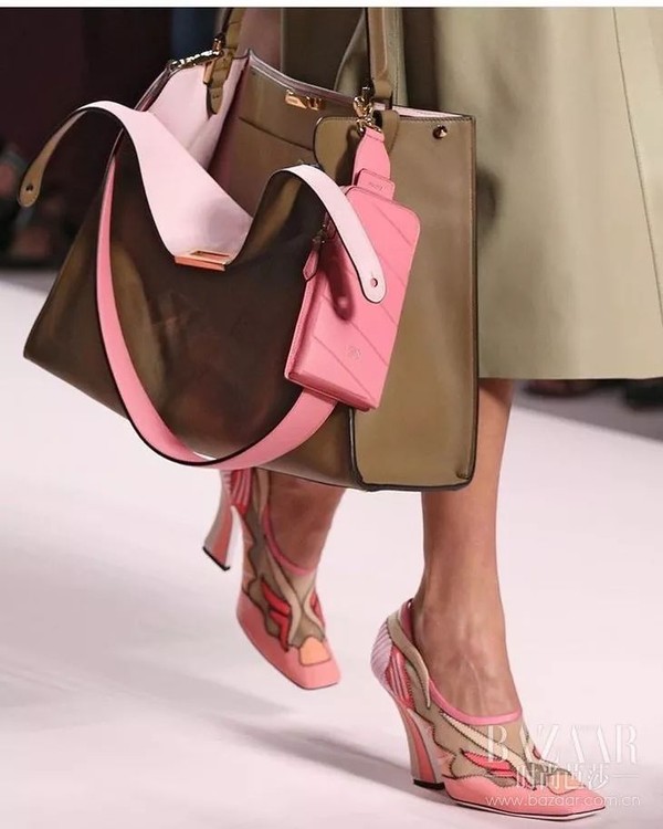 Fendi 2019 春夏秀场这个拼色包就是冷棕配冷粉,迎面而来的少女通勤气息。