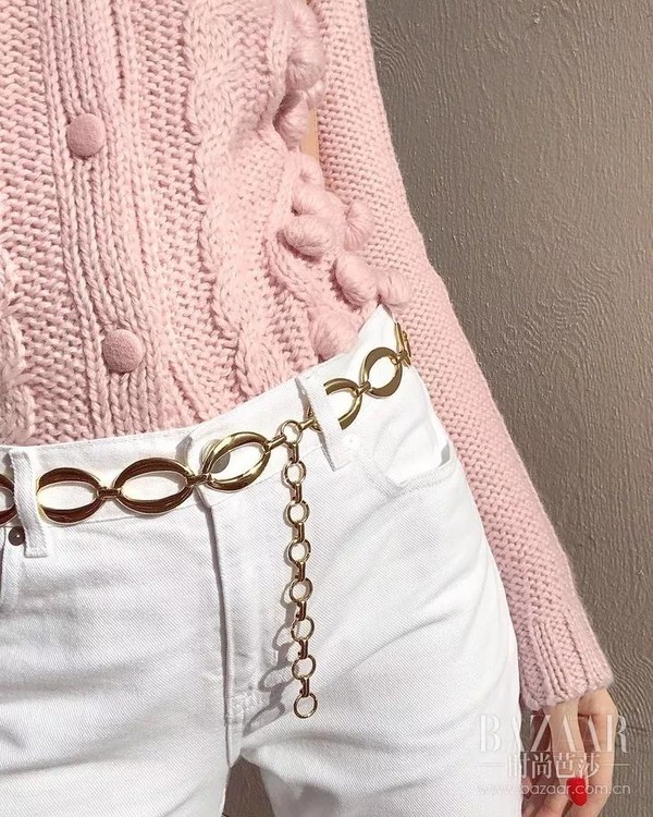 想要粉色与安全色的搭配看起来更高级,不妨加入一些金属色的元素,能够令造型格外有细节魅力。