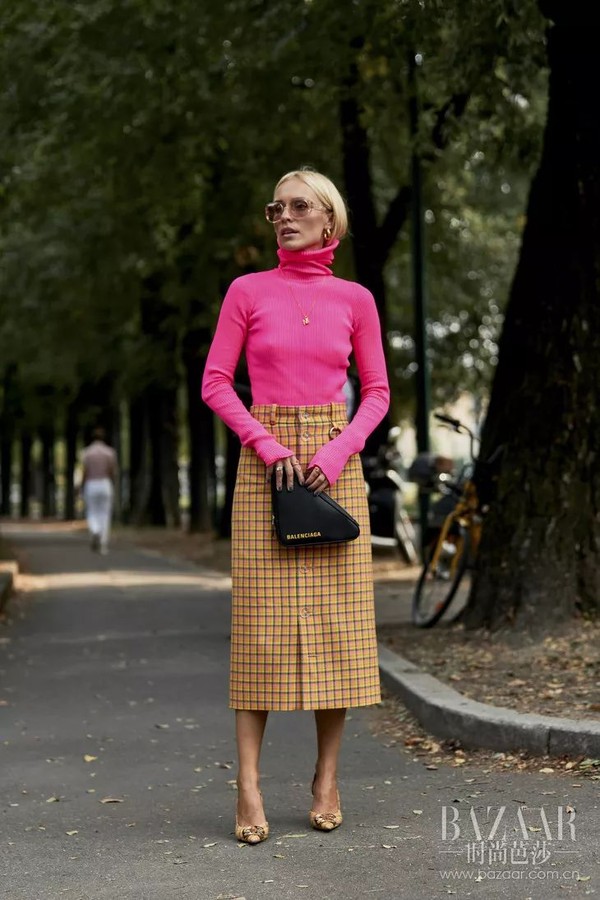 肌肤白皙的人可以尝试冷色调的粉色搭配亮眼的黄色,大胆有趣的魅力让你轻松时髦起来。