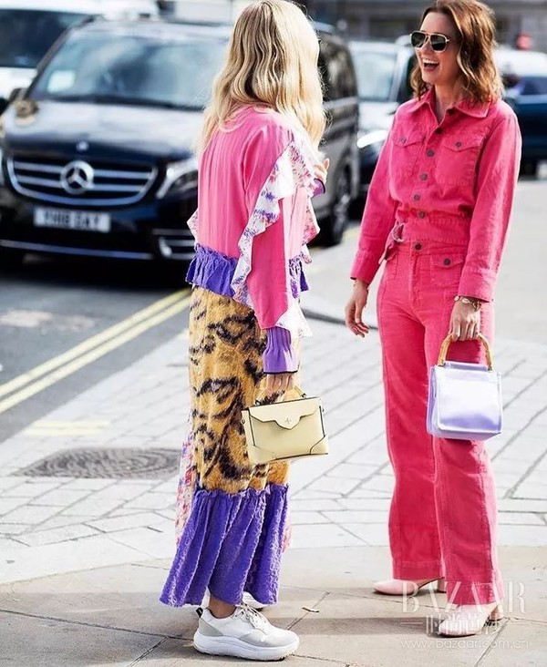 粉色与紫色的相遇,像是两位名媛的下午茶约会,是精致又优雅的配色。搭一个粉色搭配紫色的造型,轻松 get 大小姐的时髦雅致。
