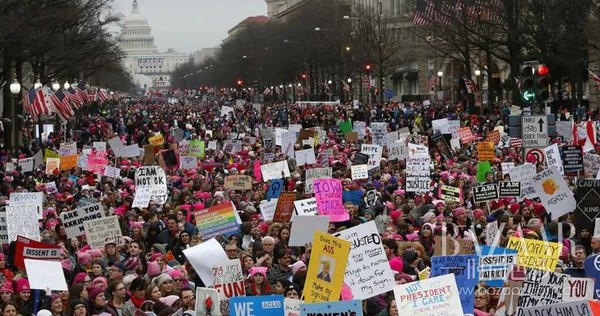 2017 年 1 月 21 日,为了平等的薪资与机会、生育权,以及(对女性)尊重这些方面,女权主义者戴上 Pussyhat 在华盛顿发起抗议游行,让世界知道女性的力量与声音。