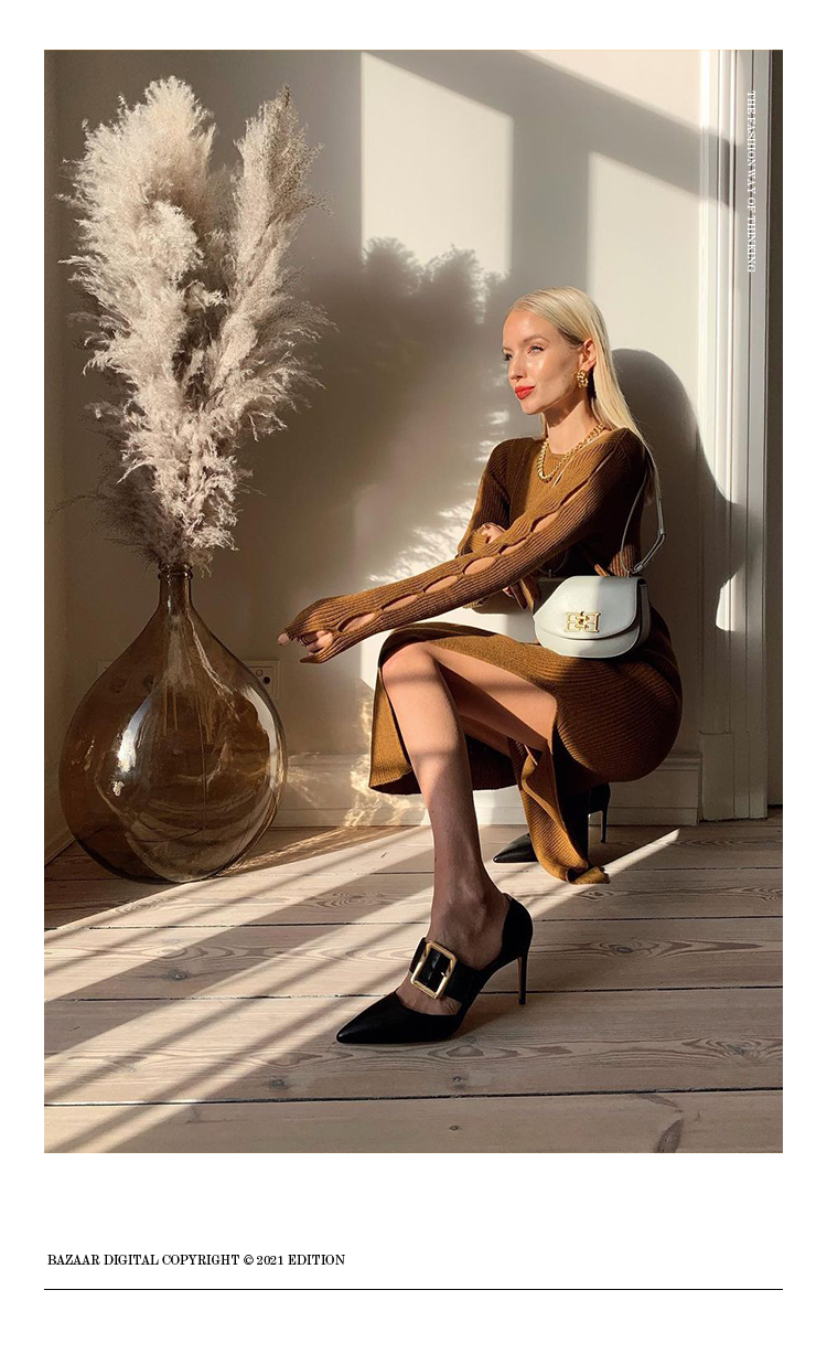 #高跟鞋+金属元素显 脚 细 的 财 阀 千 金上面Rose给我们示范的金属头高跟鞋,保持端庄优雅的同时,无疑给单调的纯色增添了一抹亮点。即使穿着正装,也难以掩盖你的时髦。