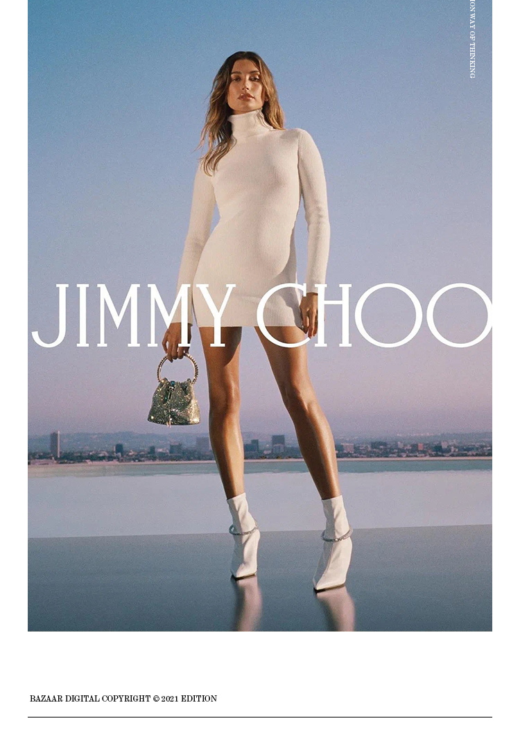 Jimmy Choo家也出了类似款,但是相对来说更加女性温柔,金属环也是做成了水晶造型,blingbling的,比简单的一双白靴更显高贵气质,顺便说一下嫂子好美啊。
