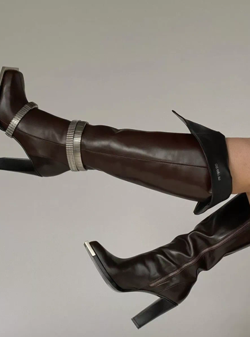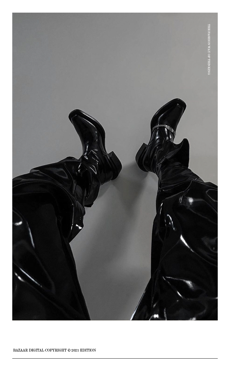 看到雨绮姐姐穿上它家的这双靴子,金属链的造型仿佛悬浮在空中,满满的未来感,真香啊。