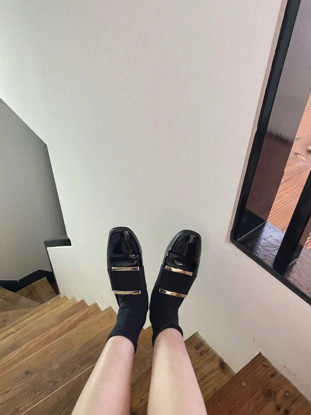 但同样是乐福鞋,配上不同形状的金属元素,风格那叫天差地别。搭配简单大气的金属方扣,霸道总裁的气场至少可以有两米。