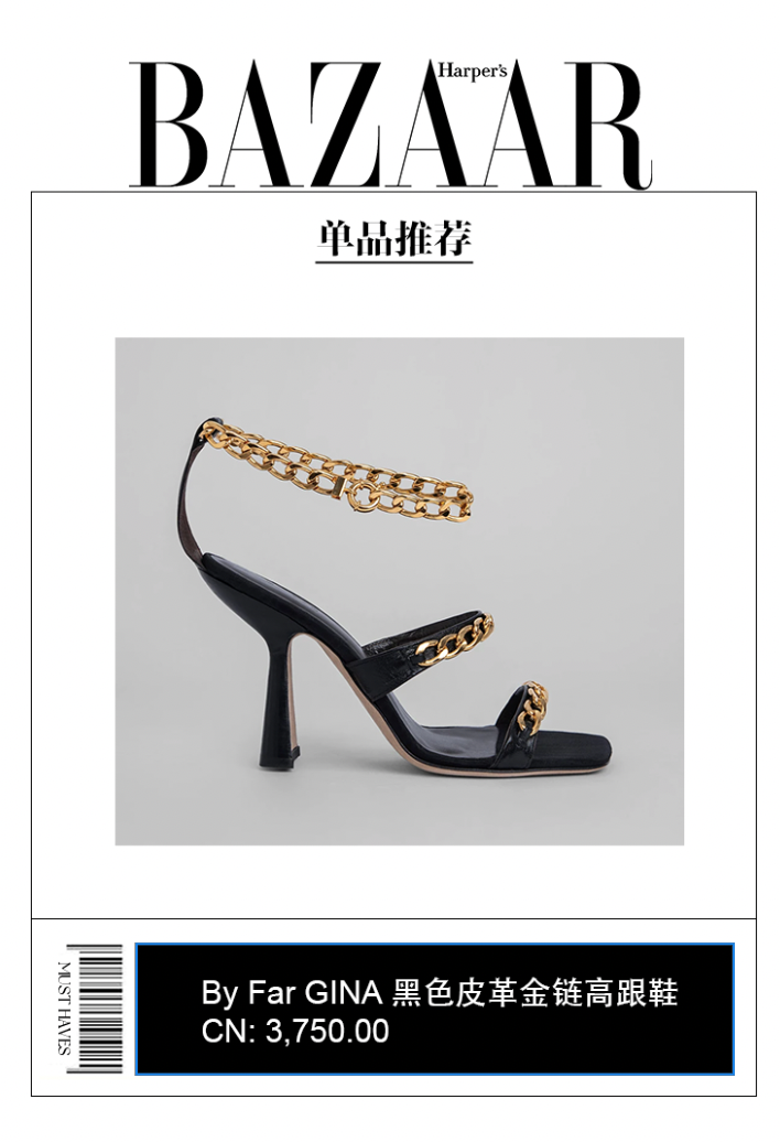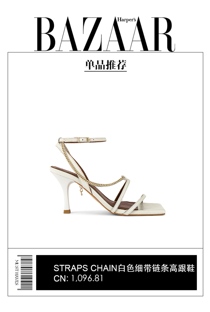 不过要说功能性最强的要数脚链款高跟鞋,质地厚重的金属链把脚踝衬得格外纤细,没脚脖子星人终于有救了。