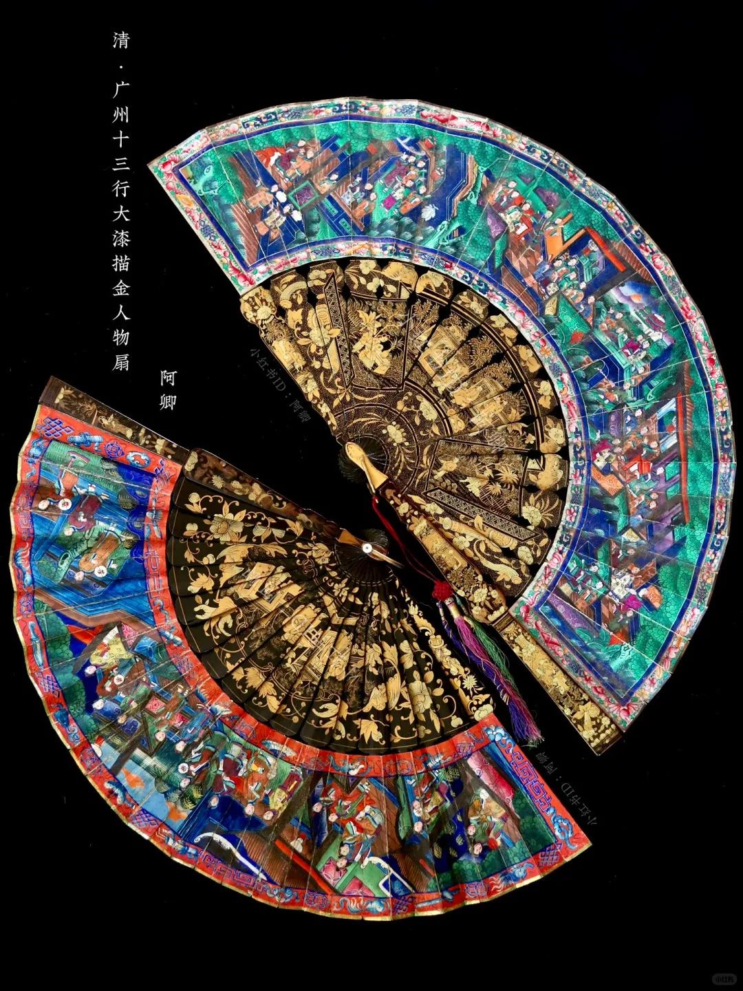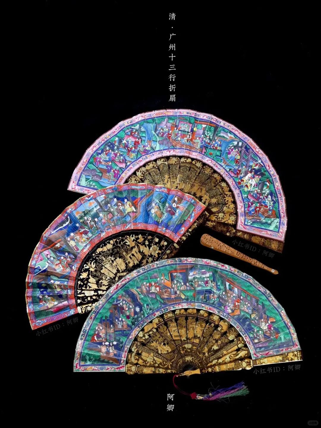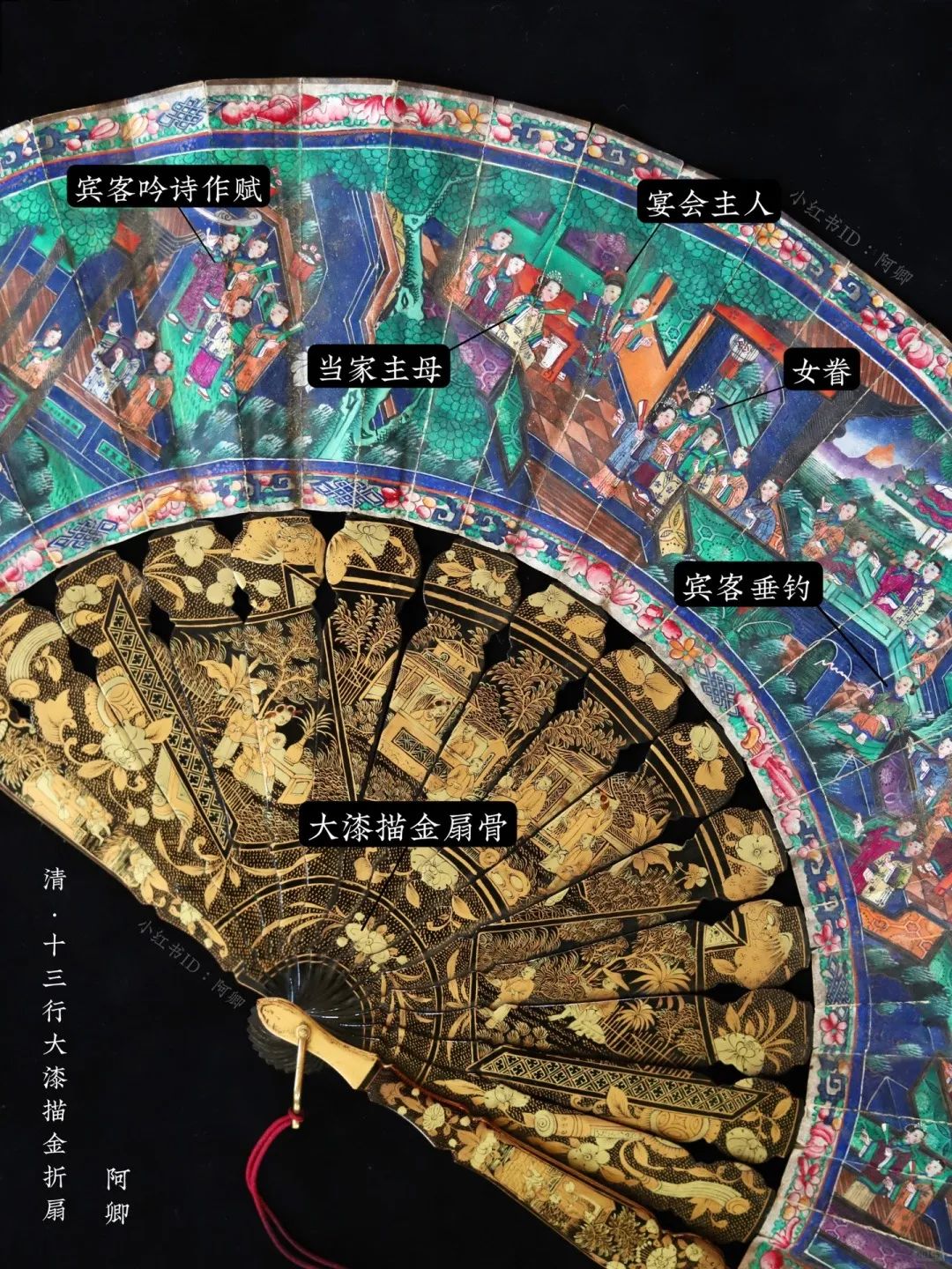 这些外销扇以西式技法再现东方风情,制作工艺包括珐琅、骨雕、黑漆描金、螺钿等,精美绝伦,体现了当时中国出口手工艺品的高级审美,成为当时欧洲名媛贵妇们争艳斗丽的时髦配饰。