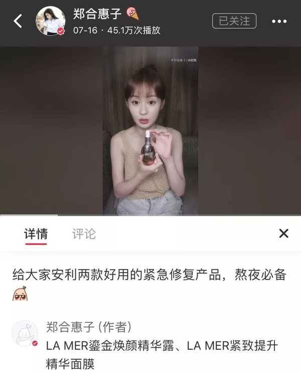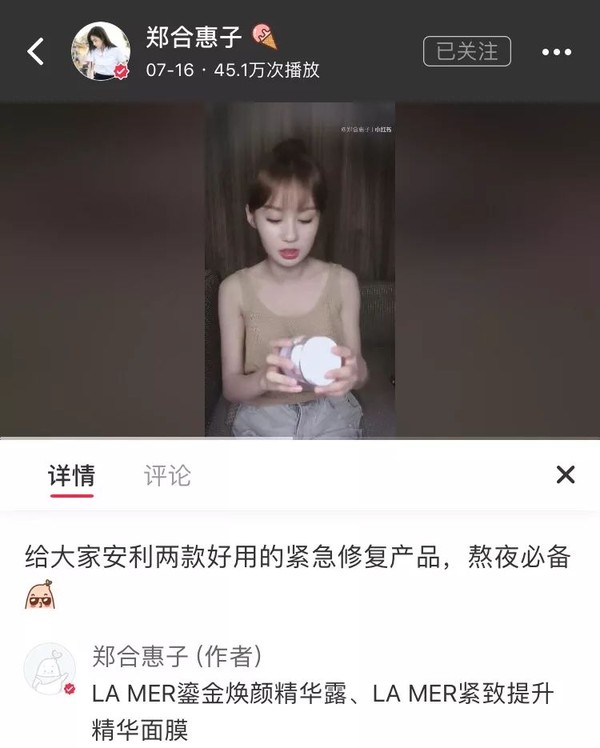 作为夜猫子,杨恭如有时候熬夜一两点才睡,但是眼部皮肤也没有变差,全靠LA MER浓缩精华修护眼霜,顺滑好吸收,可以让失去弹性和粗糙的肌肤慢慢变得光滑细致