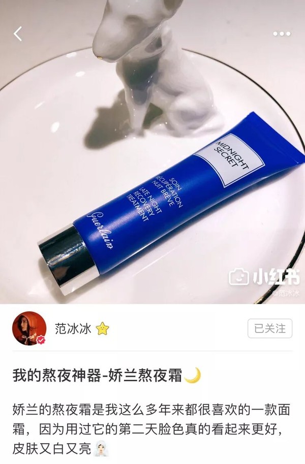 她在熬夜的情况下会在睡觉前选择厚敷在脸上,当面膜使用,早起后皮肤状态就会好很多~