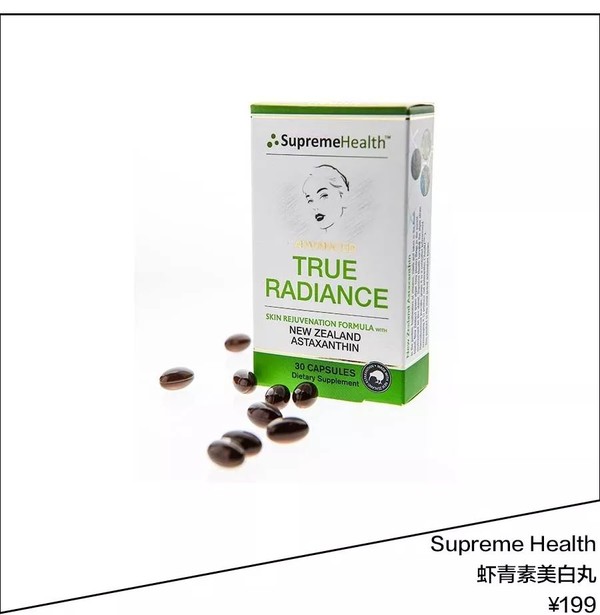 Supreme Health虾青素美白丸是新西兰本地著名的“可以吃的防晒”,张歆艺拍戏期间和休息时都会保证每天一颗,能有效修复胶原蛋白层并加强肌肤的防护屏障