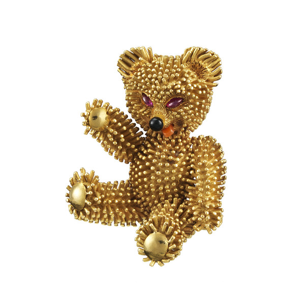 事情是这样的:1954,梵克雅宝推出了“快乐动物园”系列胸针,其中每一枚动物胸针都由黄金制成并以华美宝石点缀细节,小动物们个个出落得神态各异,你甚至能看出它们不同的性格特征:小老鼠充满好奇心,小马则很淘气顽皮……很快,这些精致的限量版动物胸针就被当时一些icon客户买走了,成为一份独特的礼物或者收藏品。