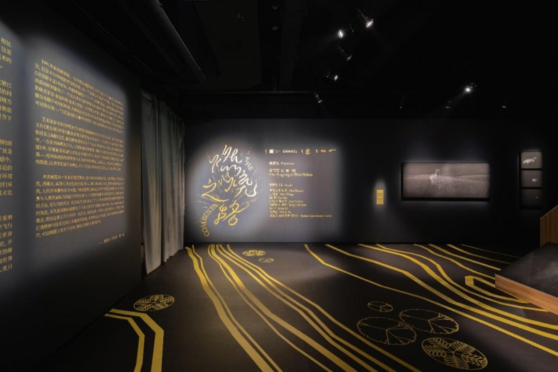 甘莹莹和周一辰携亚历克斯·特纳(Alex Turner)、王凝慧(Alice Wang ) 、顾桃(Gu Tao)、约瑟夫·科瓦奇(Josef Kovac)、玛格利·杜赞特(Magali Duzant)、宋兮(Song Xi)、徐维静(Vivian Xu)和尤里安·金塔纳斯·诺贝尔(Yurian Qunintanas Nobel)共8位艺术家的作品展出。“燃烧之路”的策展理念呈现于展厅地面的金色图案,一条由宏观至微观、由外至内的河流,将8位艺术家的作品以一种首尾衔接的方式串联,它从广阔的自然流经城市,行至人类的居所,穿越人的身体、皮肤,最终回归星辰大海,提出人类自身作为媒介连通技术与精神的可能性。