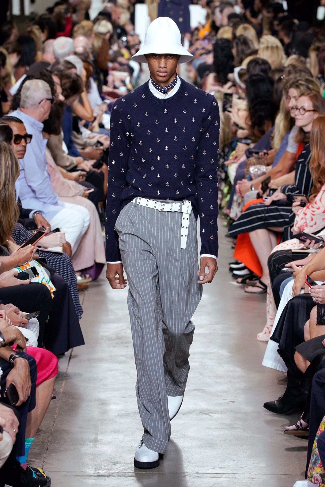 不仅如此,本季的男装也同样别出心裁。维西格、波菱格与条纹等元素尽情碰撞,搭配牛津鞋、厚底凉鞋、马鞍包等经典单品,打造了别具一格的复古潮流。除此之外,更有针织衫、运动裤、西装的混搭,此次MICHAEL KORS COLLECTION将运动风、美国复古风、英伦风巧妙结合,在大胆的尝试中缔造出了“雅痞绅士”的别样效果。