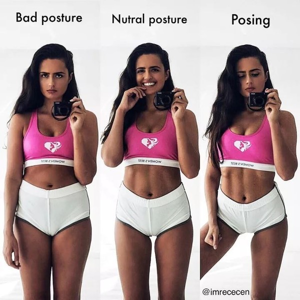 网络上那些美丽身材的照片,有时候不仅是P出来的,还是刻意摆出来的姿势。比如翘臀,看起来似乎是翘臀,实际上是通过加大腰椎曲度实现的“凹”造型。但是这些“秘密”对于那些缺乏运动解剖学基础知识的健身小白来说,这是无法判断的,所以才会出现盲目跟风的现象。