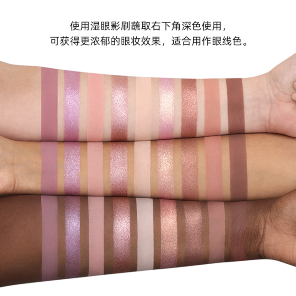 HUDA BEAUTY的裸色痴迷系列九宫格眼影盘#Light色号,配色整体偏暖调,即便黄皮也无压力。