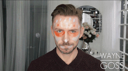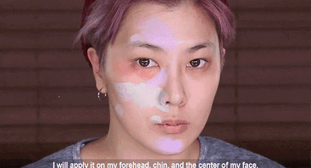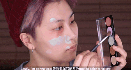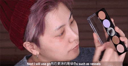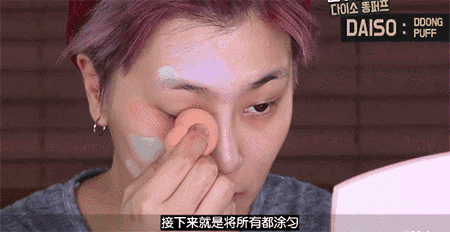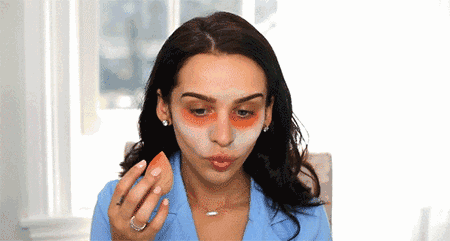 涂完肤色修正产品后,用沾湿的海绵粉扑将颜色轻轻的拍均匀。注意一个色块一个色块的晕染,尽量不要把颜色混到一起。