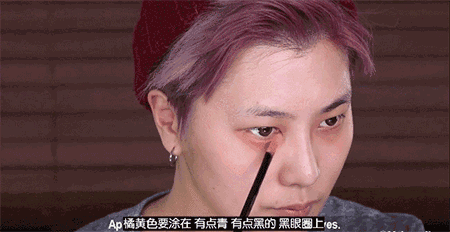 因为黑眼圈是由不同深浅的蓝紫色或者青色形成的,所以选用偏橘色进行中和互补。