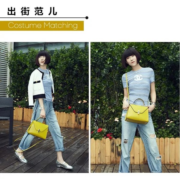 一般非特殊场合的着装都能搭配这款手袋。我多数用于日常生活和度假旅行,常搭配的服装面料有单宁和棉麻,款式都偏休闲,偶尔也会混搭时装,服装色方面除了黑白,会用焦糖色来做临近搭配或者用蓝色来达到对比的效果。