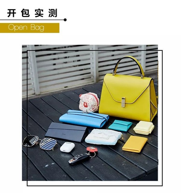 我的手袋里面经常装的就是钱包、车钥匙、化妆包、首饰包、卡包、太阳镜、药盒这些东西,它都不在话下。