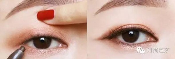 step2:之后用深咖色眼线笔画出一条细细的眼线,涂上睫毛膏增强眼妆效果。