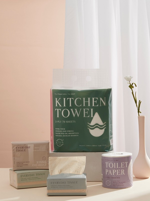 全新推出的水溶纸与厨房百变纸除了选材上的用心放心,在包装的视觉呈现上也独具匠心。选择了让消费者视觉感官更舒适的浅色系为主色调,给人温馨舒适的高级感。让人看到产品时,就已经能从中领会到ch22“美学、细致、安心”的品牌坚持。