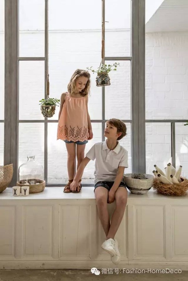 宽大的窗台上有很多植物,也是兄妹两玩耍的地方。