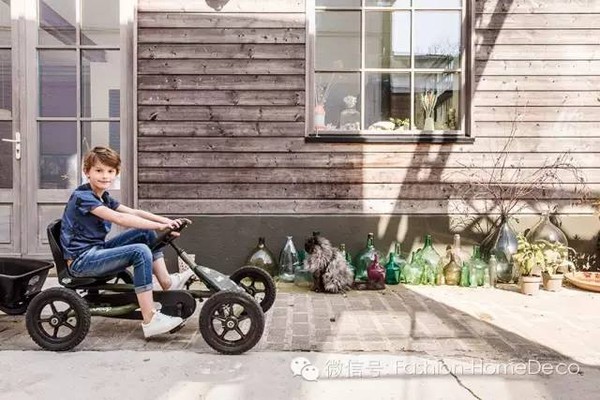 院子是属于儿子玩耍的空间,屋檐下整齐的摆放了很多玻璃饰品。