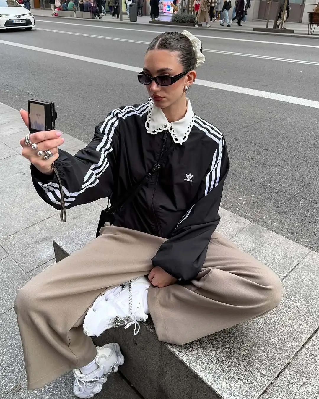 此外,这些运动单品大多板型宽松,因此注重比例是让造型更为亮眼的keywords。上下装可以在宽松和修身中制造对比,这样不仅能够展现身材优势,还能创造出视觉上的层次感和动态美。