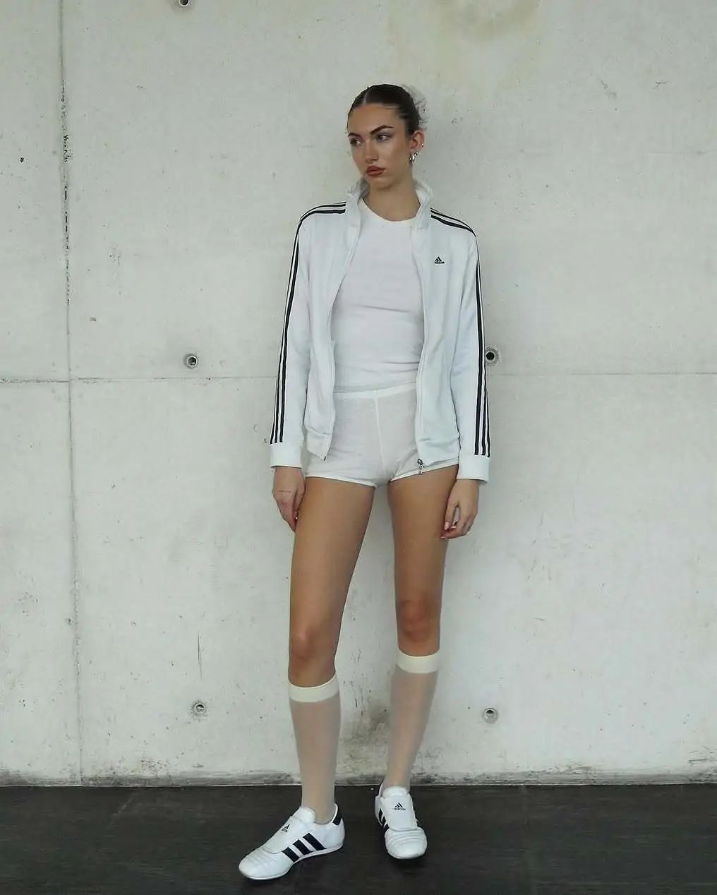 进阶版本来了!可以用球场运动单品与春日元素重新“排版”,比如在造型中加入半透明小腿袜的方式当下正“火”,或是清新吊带与运动裤的组合、花边衬衣与运动外套的搭配,都能产生有趣的质感对比。对于各位Office Lady来说,熟悉的西装、衬衣等“班味”单品也可以与球场单品组合起来,轻松实现从运动场到会议室的风格转换。两种具有“矛盾感”的单品放在一起,反而能够创造出独特的意趣。最后还可以参考韩女的小巧思,利用一点小道具令你的球衣、球鞋丰富起来,比如一件叠穿的蕾丝边,或是蝴蝶结装饰物,总之打开思路,或许能够收获随意转变风格的快乐。类似Jersey Fit这种运动风的流行也并非“灵光一现”的偶然,它与现代生活方式的“转变”紧密相连。在压力与焦虑成为都市人的普遍情绪下,球场运动单品的穿着,不仅仅是风格上的选择,更是一种对生活态度的重新思考,以及对自由、健康、活力的向往与追求。从球场吹来的穿搭之风,正是这种集体无意识的外在体现——人们期望在日常时刻也能拥有活力与舒适。趁着此刻天气正好,不妨让这一抹来自球场的清新活力伴随,唤醒内心沉睡的“运动之魂”,以全新姿态迎接新一天的挑战与惊喜,让一切如同春日般充满希望与可能。
