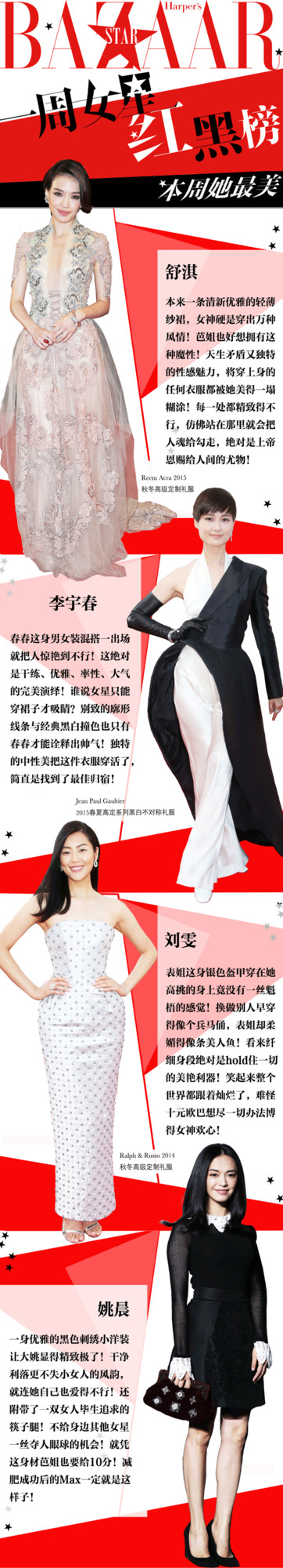一周女星穿衣红黑榜,李冰冰一身蕾丝礼服完美演绎了娇嫩黄裙正青春,Gaga秀内裤领奖走红...